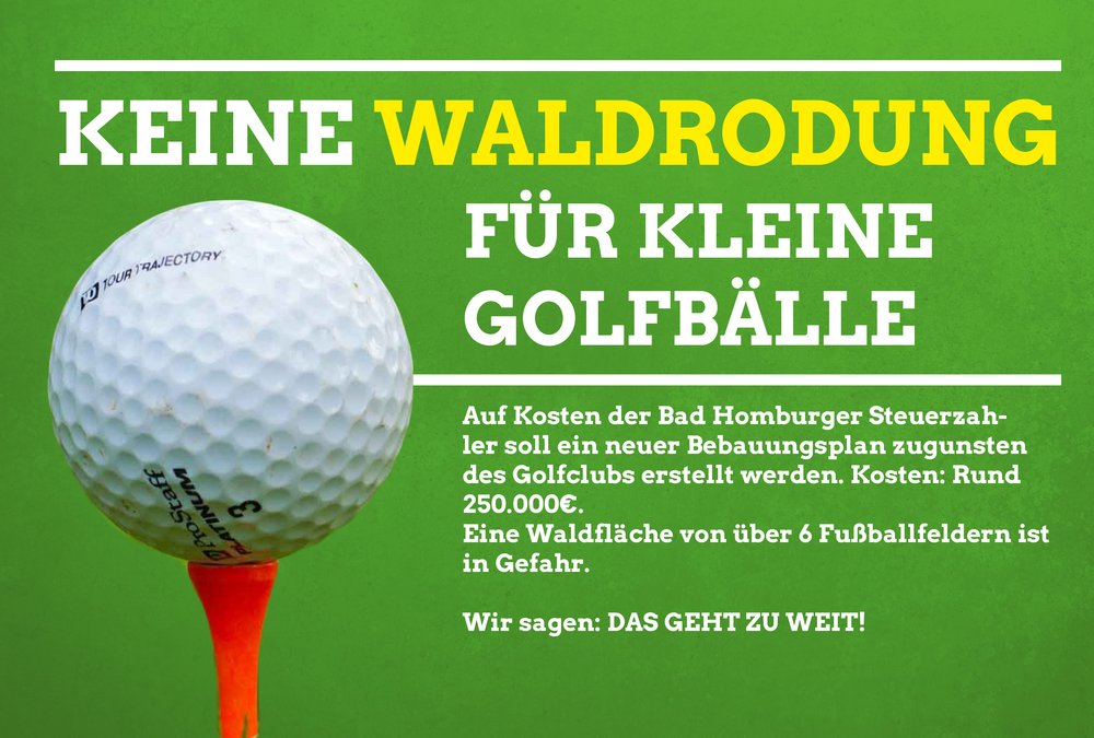 Ein klares Nein gibt es von den Bad Homburger GRÜNEN gegen die Pläne von Oberbürgermeister Hetjes, dem Homburger Golfclub 4,4 Hektar des Bad Homburger Stadtwaldes für eine Erweiterung ihres Platzes zur Verfügung zu stellen.