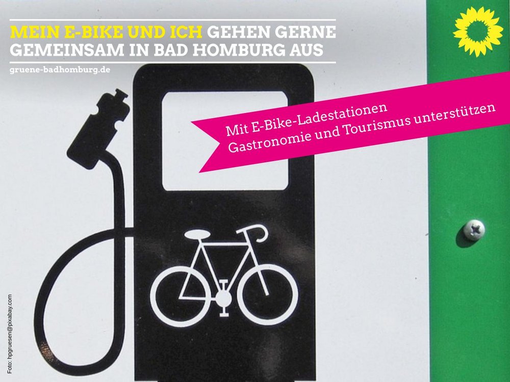 Immer mehr Menschen sind gern mit E-Bikes unterwegs. Wenn jedoch unterwegs die Akkuladung nachlässt, findet man in Bad Homburg per Online-Suche keine öffentlich zugänglichen Ladestationen für Fahrräder. „Mit unserem Antrag in der nächsten Stadtverordnetenversammlung möchten wir erreichen, dass an allen städtischen Gebäuden, die an Gastronom*innen verpachtet sind oder die Museen beherbergen, E-Bike-Ladestationen eingerichtet werden. Diese müssen dann natürlich von den Radler*innen auch leicht zu finden sein. Daher sollen sie dauerhaft online auf städtischen und touristischen Websites beworben werden, aber auch auf gedruckten Radfahrkarten und in touristischen Broschüren“, so Frauke Thiel, verkehrspolitische Sprecherin der GRÜNEN. Mögliche Standorte sind z.B.: das Gotische Haus, der Herzbergturm, der Hirschgarten, alle Bürgerhäuser, das Horex-Museum, der Landgasthof Saalburg und zudem das Kurhaus. Alexander Unrath, der grüne Oberbürgermeisterkandidat, fügt hinzu: „Wir möchten zudem noch einen Schritt weitergehen: Ein Großteil der Gastronomiebetriebe hat sehr stark unter Einnahmeausfällen aufgrund der Corona-Pandemie gelitten. Viele haben noch immer nicht das vorherige Umsatzniveau wieder erreicht. Wir möchten daher, dass der Magistrat ein Förderprogramm ins Leben ruft, für das sich private Gastronomiebetriebe bewerben können, um E-Bike-Ladestationen für ihre Kund*innen auf ihren Unternehmensgrundstücken einzurichten.“