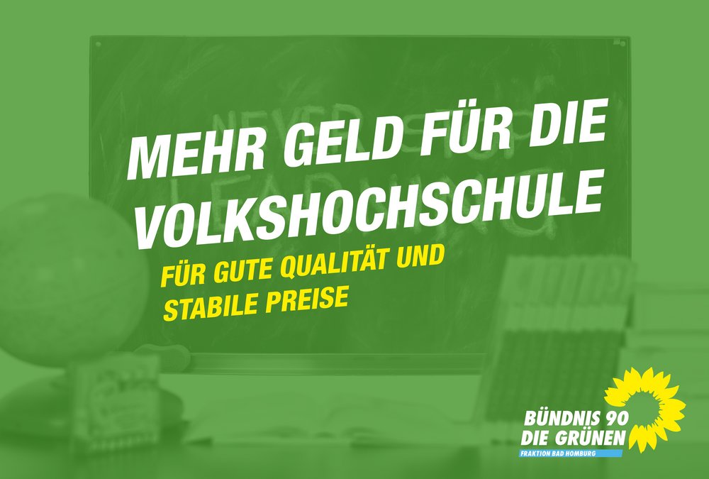 DIE GRÜNEN Bad Homburg unterstützen die Volkshochschule Bad Homburg in ihrer Forderung einen höheren Zuschuss zu bekommen. Seit Jahren stagnieren die Fördermittel, gleichzeitig steigen die Unterhalts- sowie Personalkosten. Deswegen müssen sinnvolle Investitionen geschoben werden. Aufgrund von Geldmangel droht sogar die Möglichkeit aus dem Dachverband der Musikschulen zu fliegen. Das alles sind für die GRÜNEN gute Argumente, der VHS entsprechende Mittel zur Verfügung zu stellen. „Nur so kann man den gesellschaftlichen Anforderungen für eine qualitativ gute und moderne Volkshochschule nachkommen. Die Investition kommt schließlich allen Bad Homburgerinnen und Homburger zu gute. Nur so können wir das große und bezahlbare Angebot der VHS für alle erhalten“, erklärt der stellvertretende Fraktionsvorsitzender der GRÜNEN, Alexander Unrath, und führt fort, „damit es so bleiben kann müssen wir jetzt handeln“.