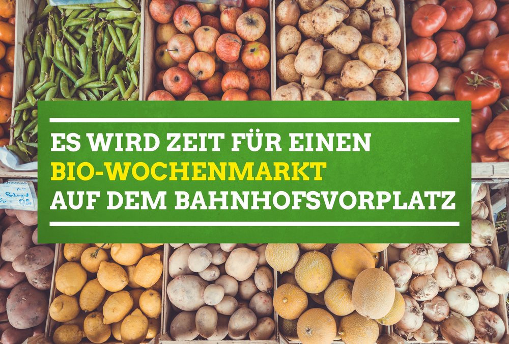 Die GRÜNEN Bad Homburg wollen nach der Fertigstellung des Bahnhofsvorplatzes einen Wochenmarkt mit Bioprodukten. Dieser soll nach der Idee der GRÜNEN an einem Donnerstag oder einem anderen Wochentag, in den Abendstunden (z.B. von 16 bis 20 Uhr), auf dem Platz vor dem Bahnhof stattfinden.